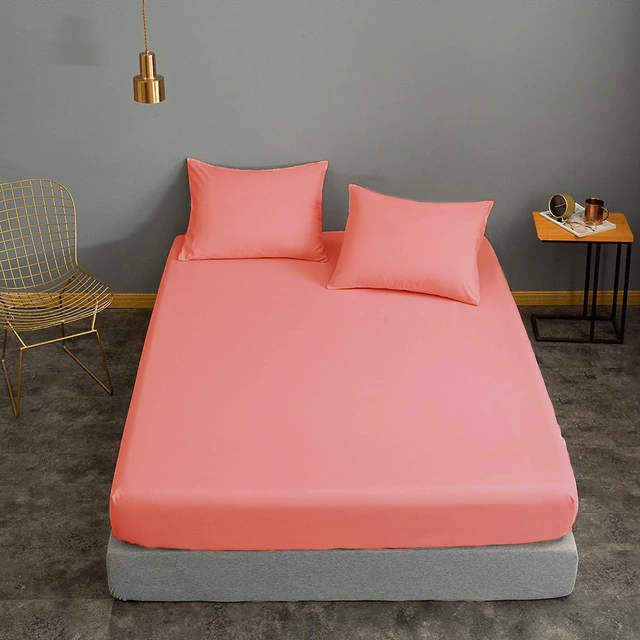 Cearceaf de pat cu elastic, bumbac natural 100%, roz pal