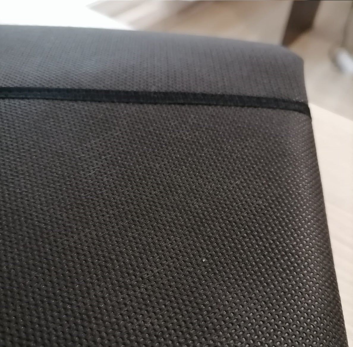 Cusute profesional cu fire groase si finisate cu o banda neagra estetic.