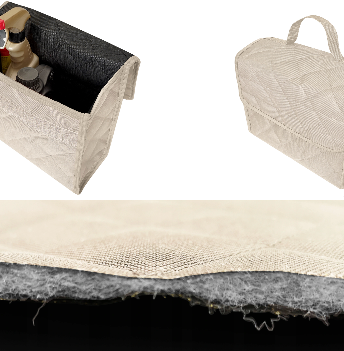 Organizator auto universal pentru portbagaj, prevazut cu banda arici pentru fixare usoara, marimea L crem