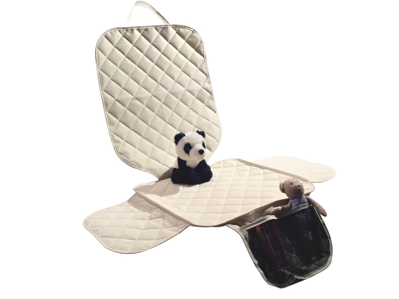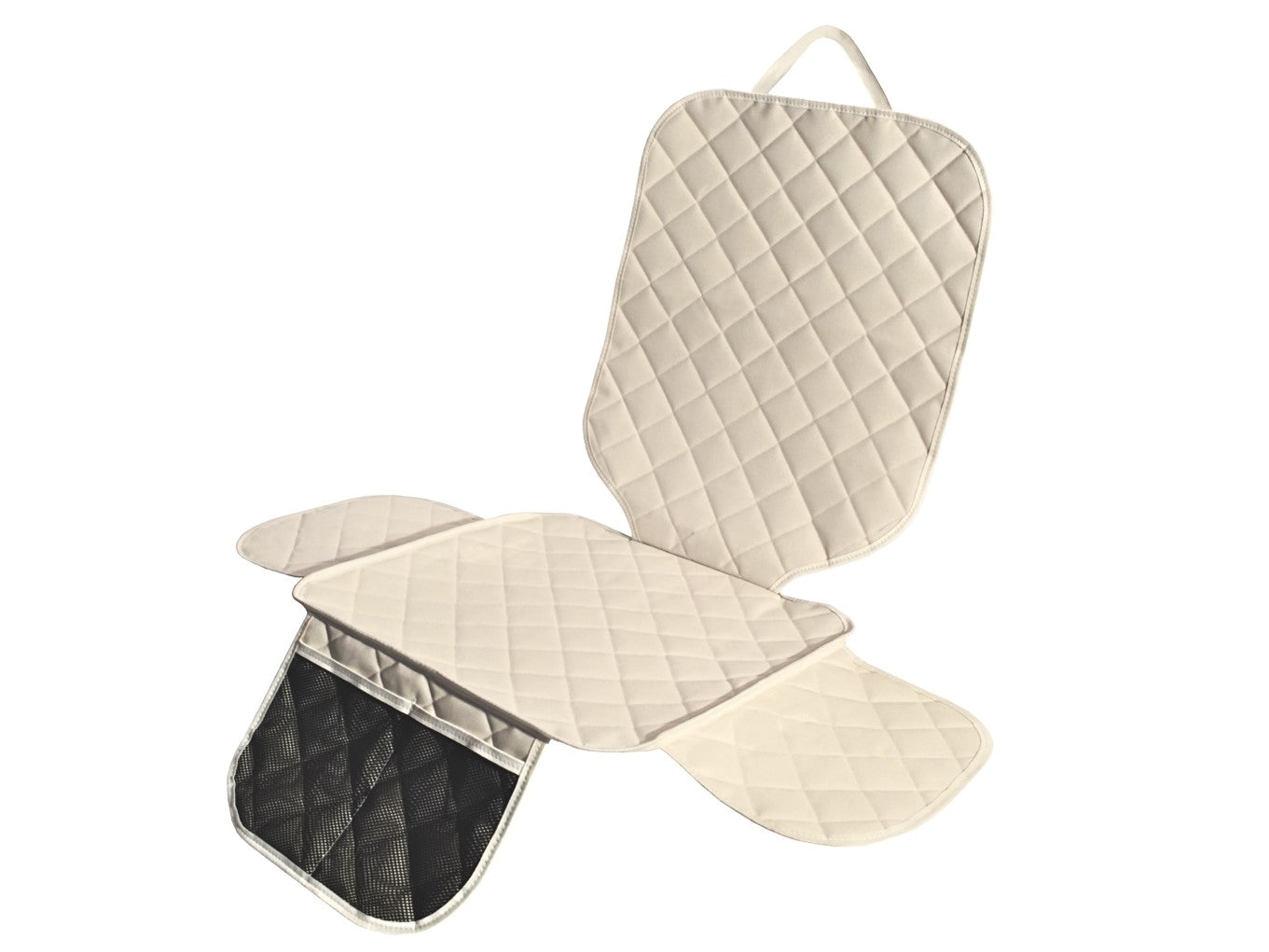 Protectie scaun auto matlasata, universala, cu protectii laterale si buzunar organizator, impermeabila, lavabila, crem