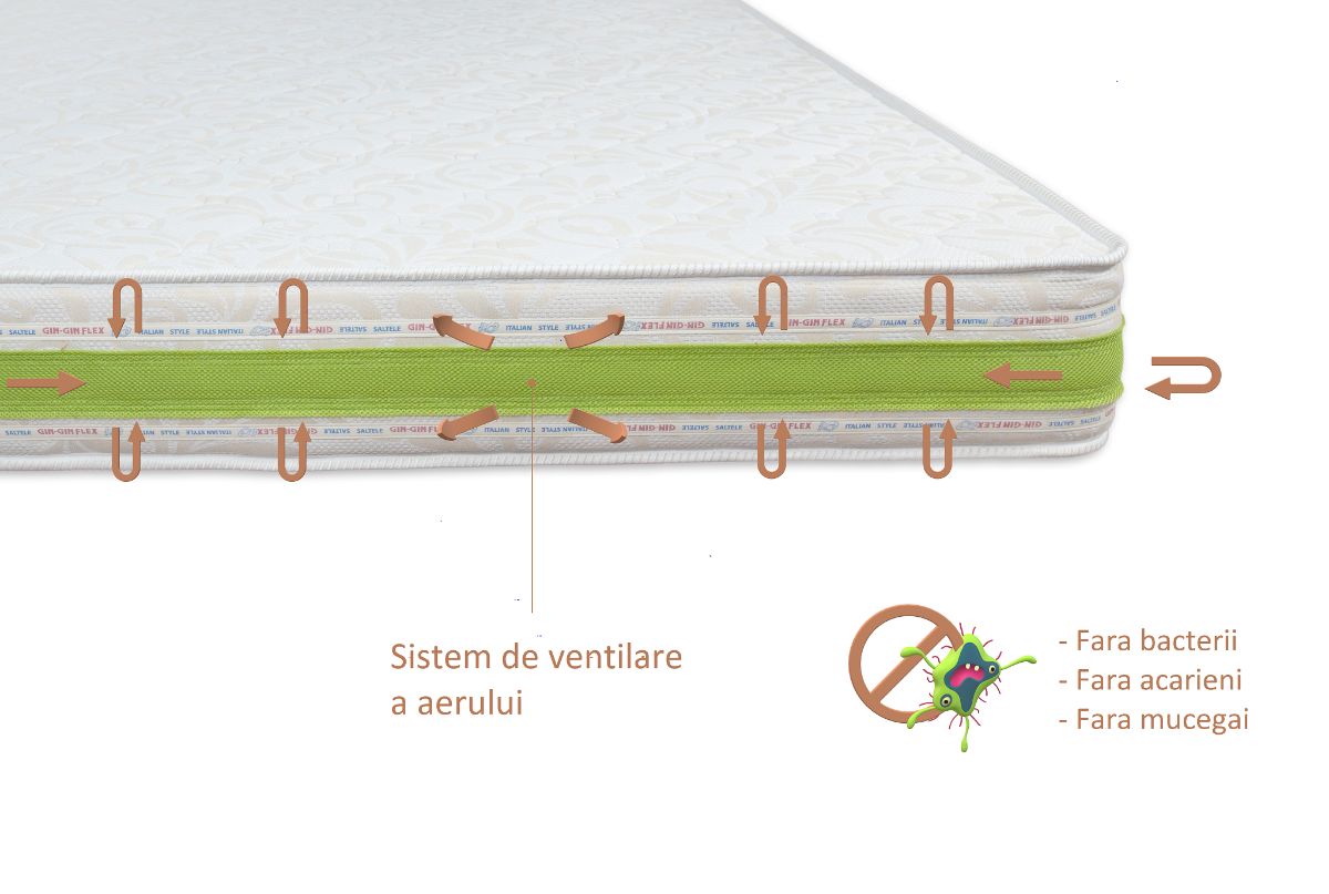 Datorita sistemului special de receirculare a aerului, salteaua nu va dezvolta bacterii, acarieni sau mucegaiuri.