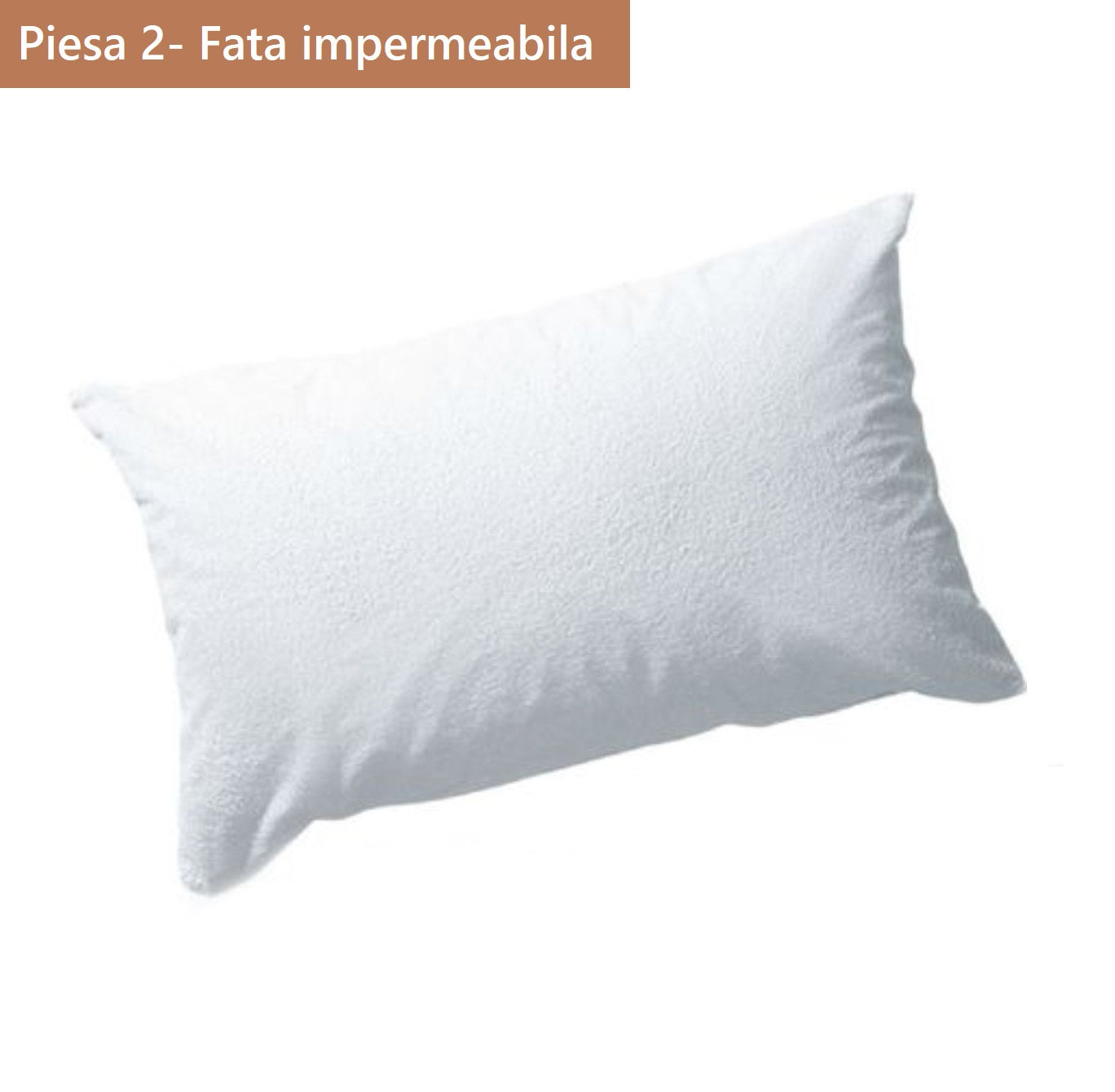 Set 2 piese impermeabile, compus din husa de protectie impermeabila cu fermoar + 1 husa impermeabila pentru perna