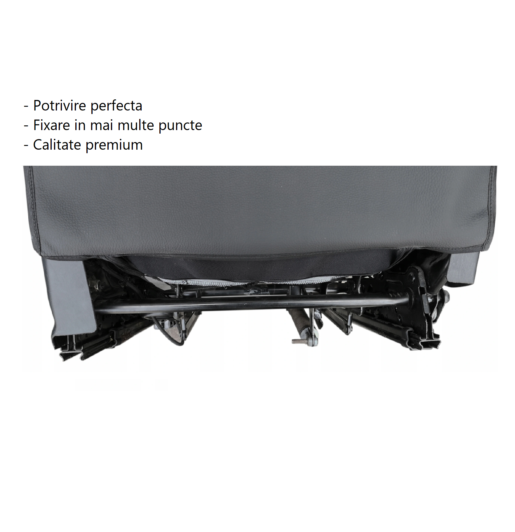 montare rapida si usoara, se prinde cu o banda de tetiera in partea de sus, iar in partea de jos sunt 2 benzi care se prind cu carlige