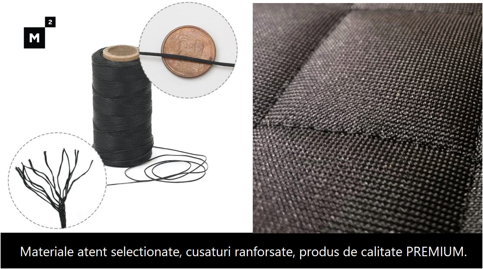 - material gros matlasat, format din 3 straturi ( partea superioara material tip codura, partea din mijloc umplutura poliester, partea inferioara polipropilena)